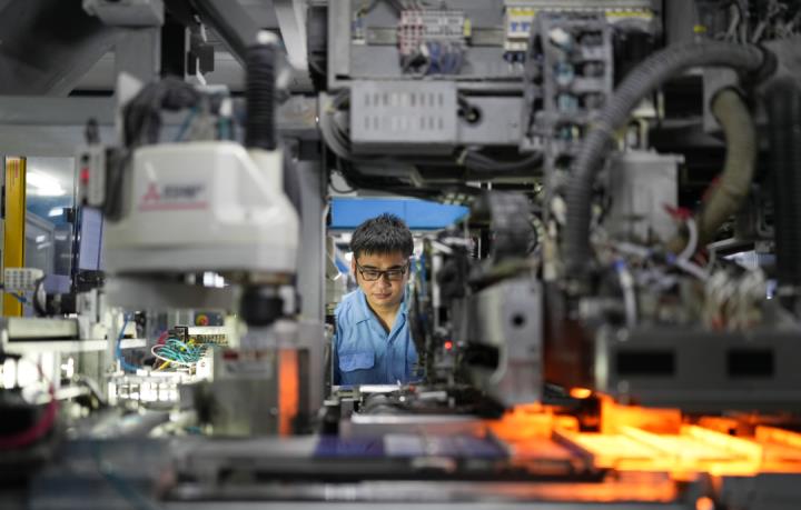 Zhejiang Gongyuan New Energy Technology Co., Ltd. in Huangyan, Taizhou, the staff is operating a fully automatic welding machine to produce solar cells. Source: Xinhua News Agency
